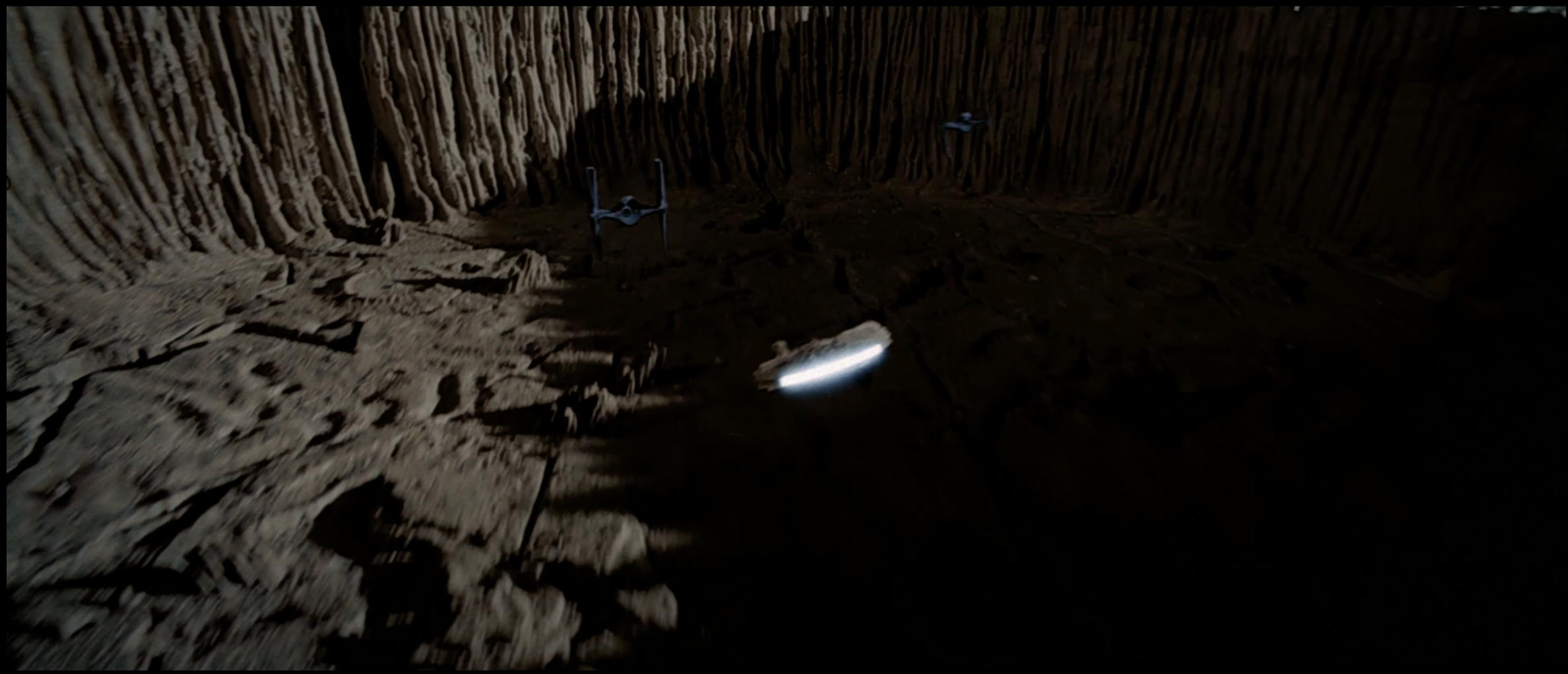 With a glorious grace-note of a backflip (presaging Maverick’s fly-by by half a decade), Han guides them to purported safety, and in a more naïve telling of this story, the sequence would understandably end here on this feel-good curlicue.
